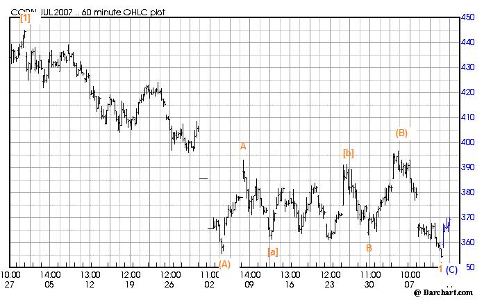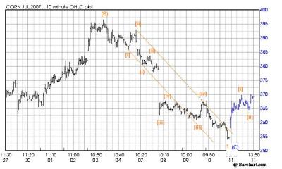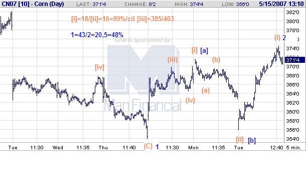 Do hodnoty asi 357 je vše na grafu uvedené správně, pak jsem v rozporu s počítáním předpokládal, že po tak dramatické korekci ten impuls nemůže tak hanebně umřít a ještě jednou překoná hodnotu 354. Trh je stoprocentní, lidé chybují.