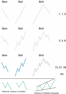 Zdravím, Nedalo mi nenapísať a logicky podchytiť tu určité nazvem to jemne "nezrovnalosti". Keď som začínal EW študovať, čo už je celkom slušné obdobie hľadal som odpoveď na otázku koľko vzorov vlastne trh má. Neskôr som sa dozvedel, že EW je fraktálna štruktúra a tak k nej treba pristupovať. Teda nosnou časťou sú základné vzory EW, ktoré skladaním vytvárajú celkový priebeh (fraktálnu štruktúru). Ten kto nevie, čo je fraktálna štruktúra (fraktál), nemôže rozumieť tejto štruktúre v trhu. To je ako vedieť upiecť chleba, keď nepoznáme, čo všetko do výroby chleba treba. EW sa tvári ako matematický fraktál, ktorý je symetrický. Pod týmto pojmom sa schováva (samopodobnosť a sebapríbuznosť fraktálu so svojím vzorom).[bold] Niekto povie, že toto nepotrebuje vedieť, avšak táto vlastnosť fraktálov odlišuje teoretické fraktály od fraktálov skutočných, ktoré sa nachádzajú v prírode a v trhu taktiež. [/bold]. Tu vidím chybu (určitých jedincov) pri silení popisu trhu cez EW v podobe, že neuvažujú s tým, že trh je reálna, fraktálna štruktúra. Na priloženom obrázku je rozvoj fraktálu, ktorý je z EW, tu vidieť "teoretický rozvoj". Základné vlnové vzory fraktálu trhu aj teórie EW sú na tom obrázku: [bold] -jednotkový vzor (bull, bear) -dvojkový vzor(bull+bear=both) -trojkový vzor ( bull+bear+bull=both+bull, alebo bear+bull+bear=both+bear) -päťkový vzor (......=trojkový+dvojkov vzor) [/bold] Tieto vzory stačia na vyskladanie komplet štruktúry v trhu, random walk. Avšak treba zdôrazniť, že jednotlivé vzory majú svoje modifikácie (prirovnanie:ako strom, ktorý ma rovnaký tvar vetvičky, ale nemá rovnako dlhé vetvy). Niektoré tieto modifikácie sú zakreslené na obrázku. Rôzna veľkosť bull, bear v jednotlivých vzoroch vytvára nutne modifikácie týchto vzorov (v EW definované ako flath, irregular..). Takže, elliottwave.com vie o čom píše, je to logické a dá sa to dokázať. Je smutné, že niekto sa stáva odborníkom na úrčitu oblasť a nevie základné veci ohladne fraktálov a vzorov v trhu. Čo považujem za najv)čšiu chybu na temto diskusnom vlákne je, že neprihliada pri svojom subjektívnom počítaní vĺn na primeranosť dosahov bear/bull a bull/bear (táto vec je do EW zakomponovaná a jej pochopenie súvisí s fibonacciho číslami.) Znova treba povedať, že trh nerobí len fibonaččiho pomery, ale čo je podstatné robí pohyby, ktoré sa k ním približujú. To je reálny trh, tak ako aj strom v prírode, je podobný no nieje identický s nijakým ďalším stromom.