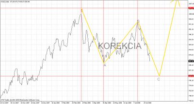 To Rozek Vaše varianta je pravděpodobná. Ještě ji doplním. Vlna 1-5 je dlouhá 550 (174-724). Nejčastější retracementy jsou 38,2; 50; 61,8. Což znamená pokles na 538,468,399. Dosavadní minimum je 512. Je těžkě odhadnout kam půjde trh, ale podle vlnového počítání nejlépe vychází 399. Současně je trh ve vlně B - to pěkně naznačil kolega Rozek. PS:pokud jde o vaši otázku tak správně to máte na obrázku.