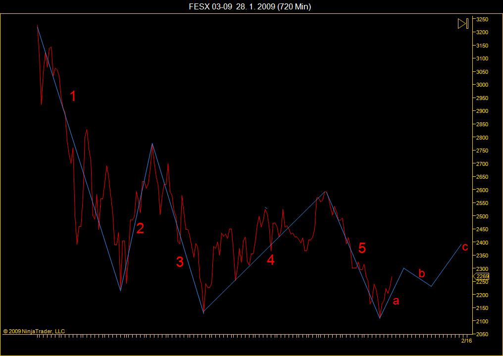 K vašemu trhu mám dvě varianty: Černá se mi zdá více pravděpodobná protože, vlna 1(nebo také B) je evidentně 5-vlná, kdyby to byla korekce tak by musela být 3-vlná. Pokud by nastala černá pak v dohledné době půjde trh nahoru(nicméně c současnou chvíli bude nejspíše stagnovat). Červená variana počítá s poklesem pod minimum vlny A. Pokud jde o váš dotaz na značení tak na stránkách http://www.elliottwave.com/ by mělo být 10 lekcí elliota zdarma zde se dovíte mnoho a mělo by vám to odpovědět na otázku.