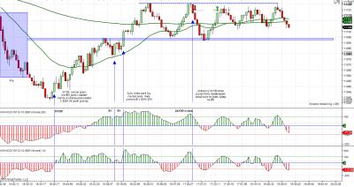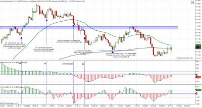 Tak mam tu novy graf. Jedna se o replay z 1.10.2010. Jeste nez se k tomu vyjadrim, chci se zeptat, jedete replay jen na hodinach ktere se chystate v realu obchodovat?Nebo jedete cely obchodni den? Takze ke grafu: Prvni obchod jsem sel na Long v 16:18, a to na zaklade patternu 0V a obe EMA byly pod trhem.Takze jsem cekal long, ale okamzite po vstupu se trh otocil a vyhodil me na SL, chvili po tom tam byl pattern 2V( v podstate vrchol tvoril muj vstup) ktery sel na Short, ale oba konce usecek byly nad 0 a trh byl nad EMA,ale i tak to udelalo krasny pohyb. Zobchodoval by jste to nekdo?Na zaklade techto signalu? Druhy a posledni obchod v teto seanci ktery jsem udelal byl v 17:09, Trh mi dal hezky citelne 2V v 17:06 na stranu SHORT, nyni se trh nachazel pod EMA, takze vypadalo vse hezky, ale opet se otocil a vyhodil me a udelal dalsich par vecek, ale nic extra. Nejake rady jak todle filtrovat? Trh se v podstate dostal do chopu, teda myslim. Tak prosim o nazory. diky Jakub