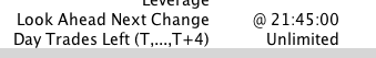Mr Michal, podívej se do okna Account, pokud máš, tak jako na screenu, u položky Day Trades Left označení "Unlimited", máš k dispozici ekviovalent větší než 25.000 USD, pokud tam máš posloupnost pěti čísel - například 3,3,3,3,3, tak to znamená, že nemáš tento ekvivalent a v následujících pěti dnech můžeš udělat 3 day trades, s každým takovým obchodem se ti bude měnit tato posloupnost čísel podle počtu denních obchodů