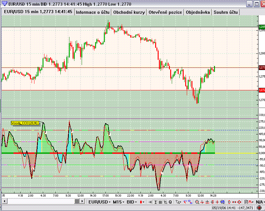 Preferuji 15min grafy. Až přijdu na nějaké zajímavé nastavení, určitě si ho nenechám pro sebe. Se samostatným působením CCI nepočítám, zkouším ho nějak šikovně zkumulovat s ostatními indikátory...