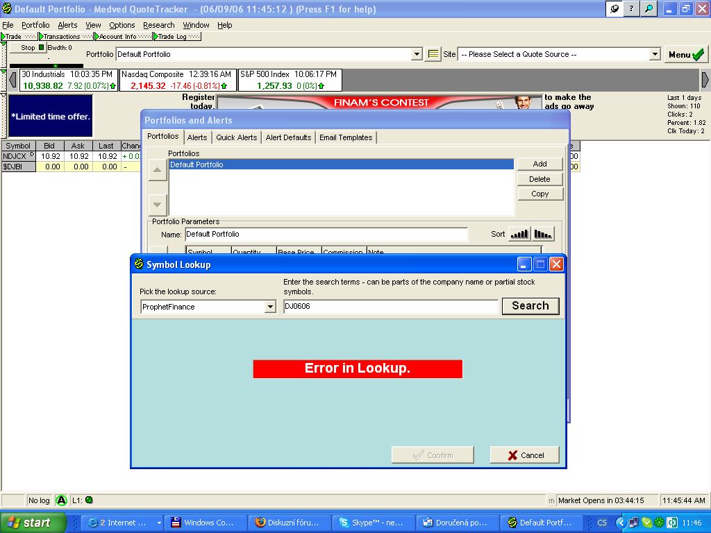 Pokud zadam ES0606 nebo DJ0606 a pod. tak to vyhodi stale stejnou hlasku vz. priloha. Uz jsme si myslel, ze nemam na Prophetu povolene prijimat dat, ale evidentne mam. Na webu se muzu divat na co chci.