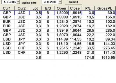 Tak jsem u FXDD zkusil vypnout a zapnout MT a aniž bych se nově zalogoval, přiřadilo mi to nový účet a výsledky tu tam, i když je mám na papíře...dnes +376pips, tak tomu nerozumím. Je možný, že by byl report ještě někde uložen?Trochu jsem si i zaskalpoval před vyhlášením.+130pips:o)