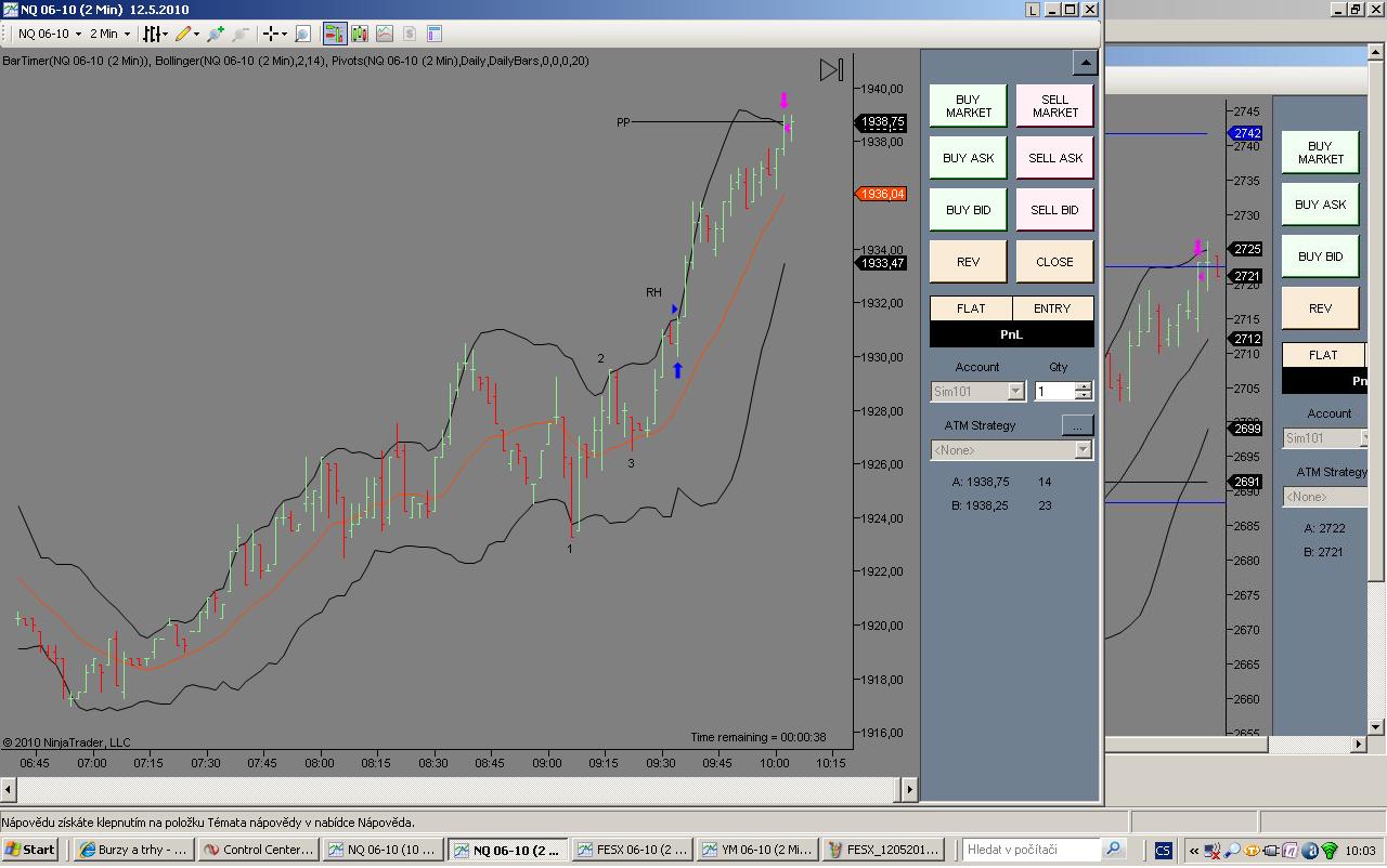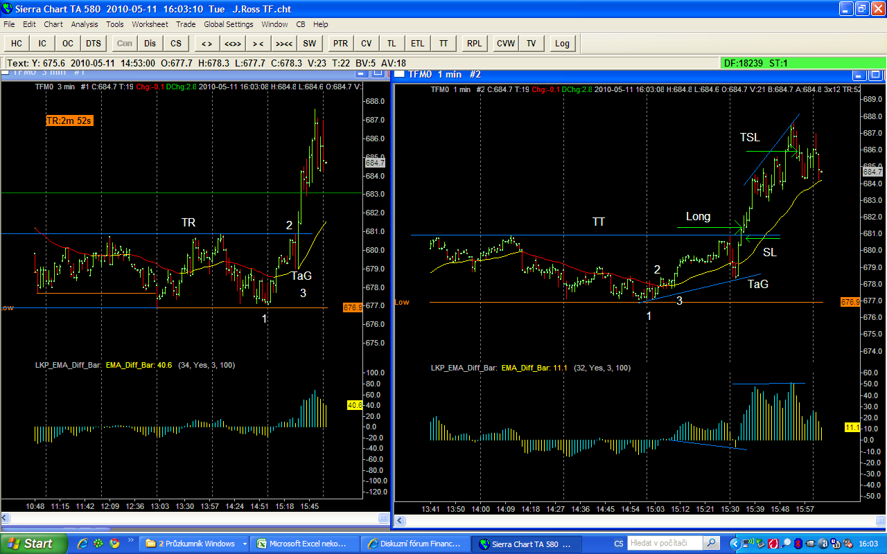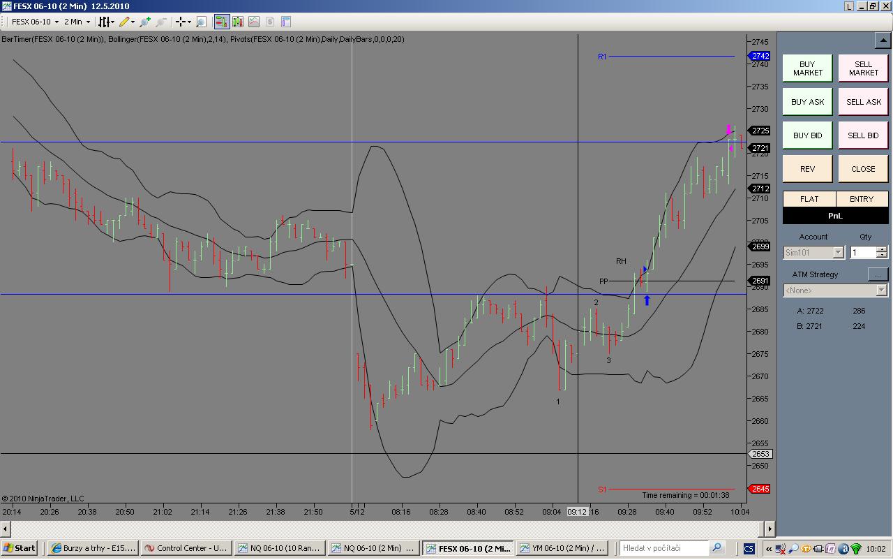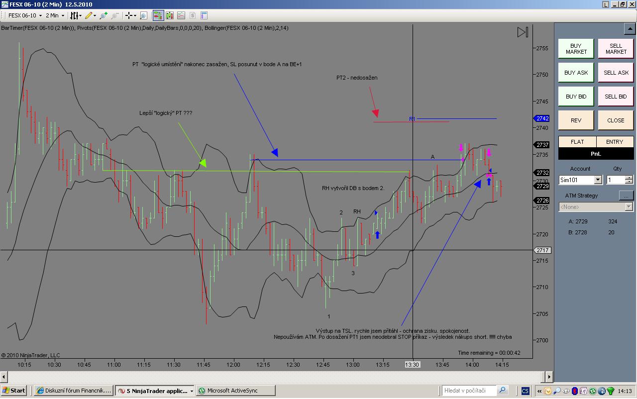 TO all , JiM36. Tak zase jeden demo obchod na FESX. Celkem spokojený. jen jsi nejsem jistý tím vstupem. vstupoval jsem na základě RH který vytvořil s bodem 2 DB. (tvůj vstup JiM36) další RH byl o 3 usečky později taky se dalo vstoupit . Výstup už celkem ok jen určení logického PT1 bylo podle mě "zajímavé". co vy na to ??? děkuji za komenty s pozdravem Liliputek