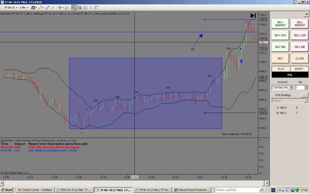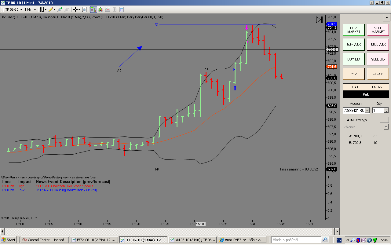Zdravím, tak dnes jsem si pinknul jeden LIVE. psycha v pohodě. PT na SR , kousek pod pivotem. nakonec +19b. s pozdravem Liliputek ps: zatím po návratu do obchodování LIVE , 4 obchody a 3x win :) takže spokojenost.