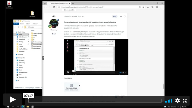 Dnes dokončíme skript pro testování obsahu dat stažených pomocí data downloaderu. Navážeme na předchozí videa, ve kterých jsme si postupně ukázali, jak pomocí Jupyter notebooku převést do kódu základní myšlenky a následně je exportovat do formátu klasického python skriptu.