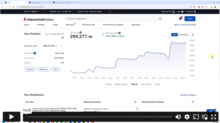 Z mé zkušenosti je lepší začít co nejjednodušeji. Proto první hotová automatizace spočívá v nákupu put/call 0TDE opcí.