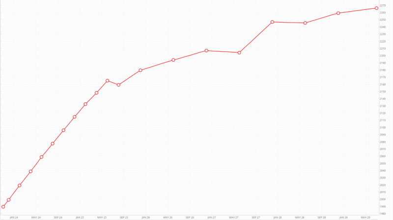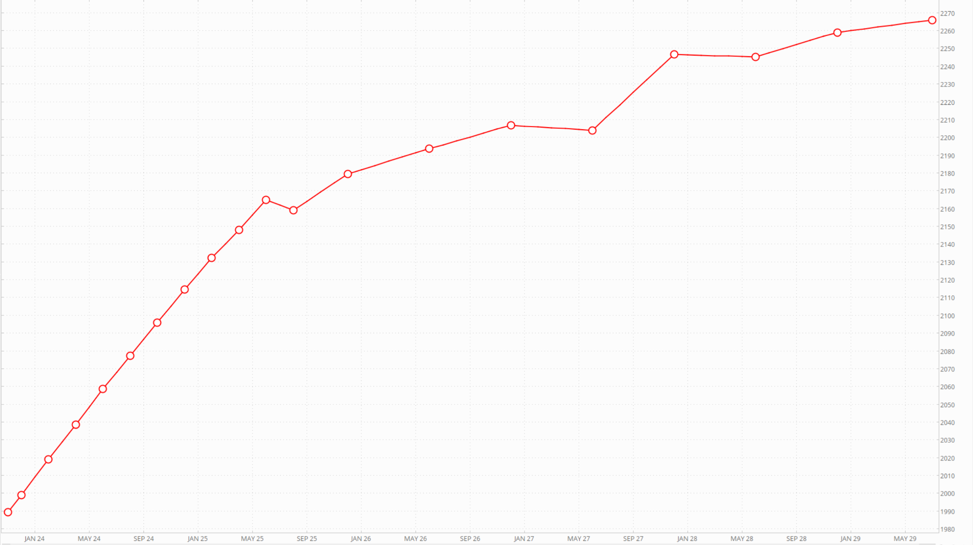 Toto je aktuální (říjen 2023) forward křivka futures ropy: