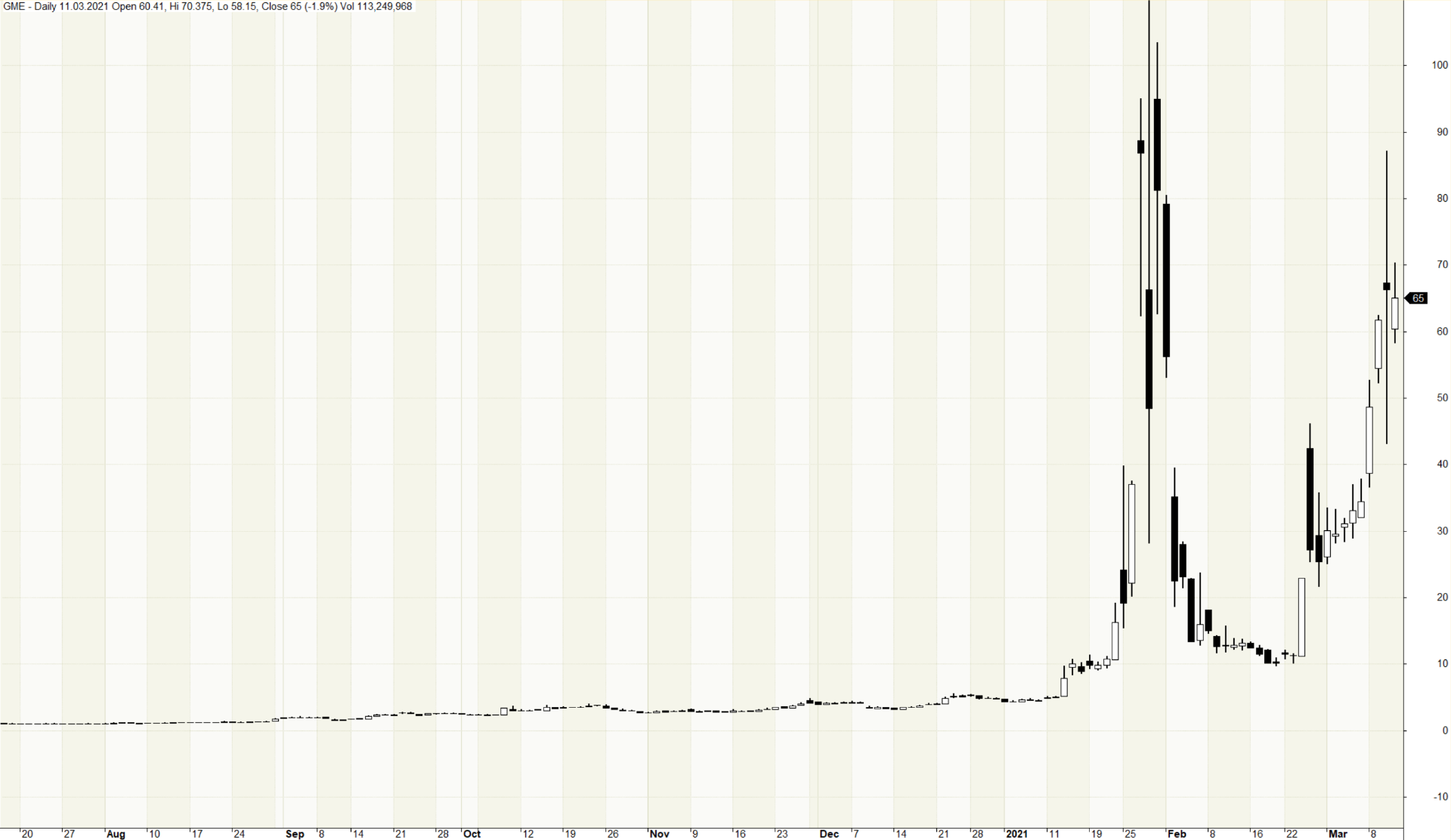 Typickým short squeezem byla situace v akcii Game Stop (GME) na jaře 2021. Akcii shortovalo mnoho institucionálních investorů, kteří byli nuceni pozice opustit poté, co retailoví obchodníci začali ve velkém tuto akcii nakupovat pod taktovkou ohromného množství drobných traderů sdružených v diskuzní skupině reddit. Tématu se věnuje i film Peníze těch tupců.